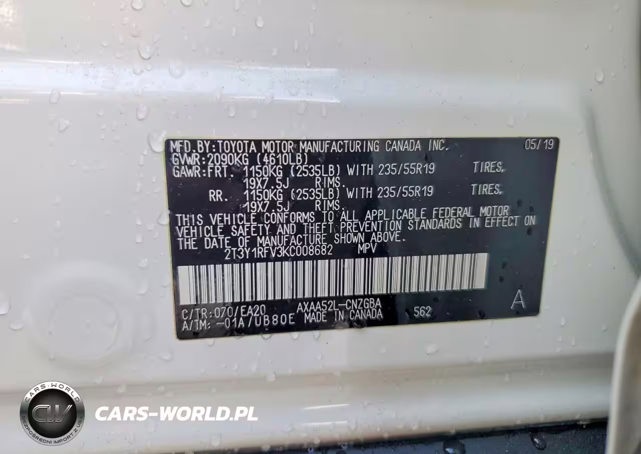 Copart Nr: C-75757785 VIN: 2T3Y1RFV3KC008682 Port: Houston, TX