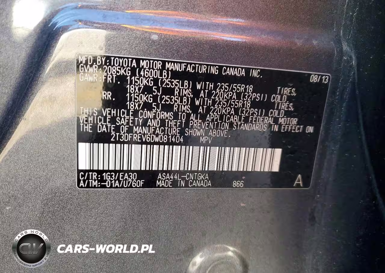 Copart Nr: C-75761095 VIN: 2T3DFREV6DW081404 Port: Houston, TX