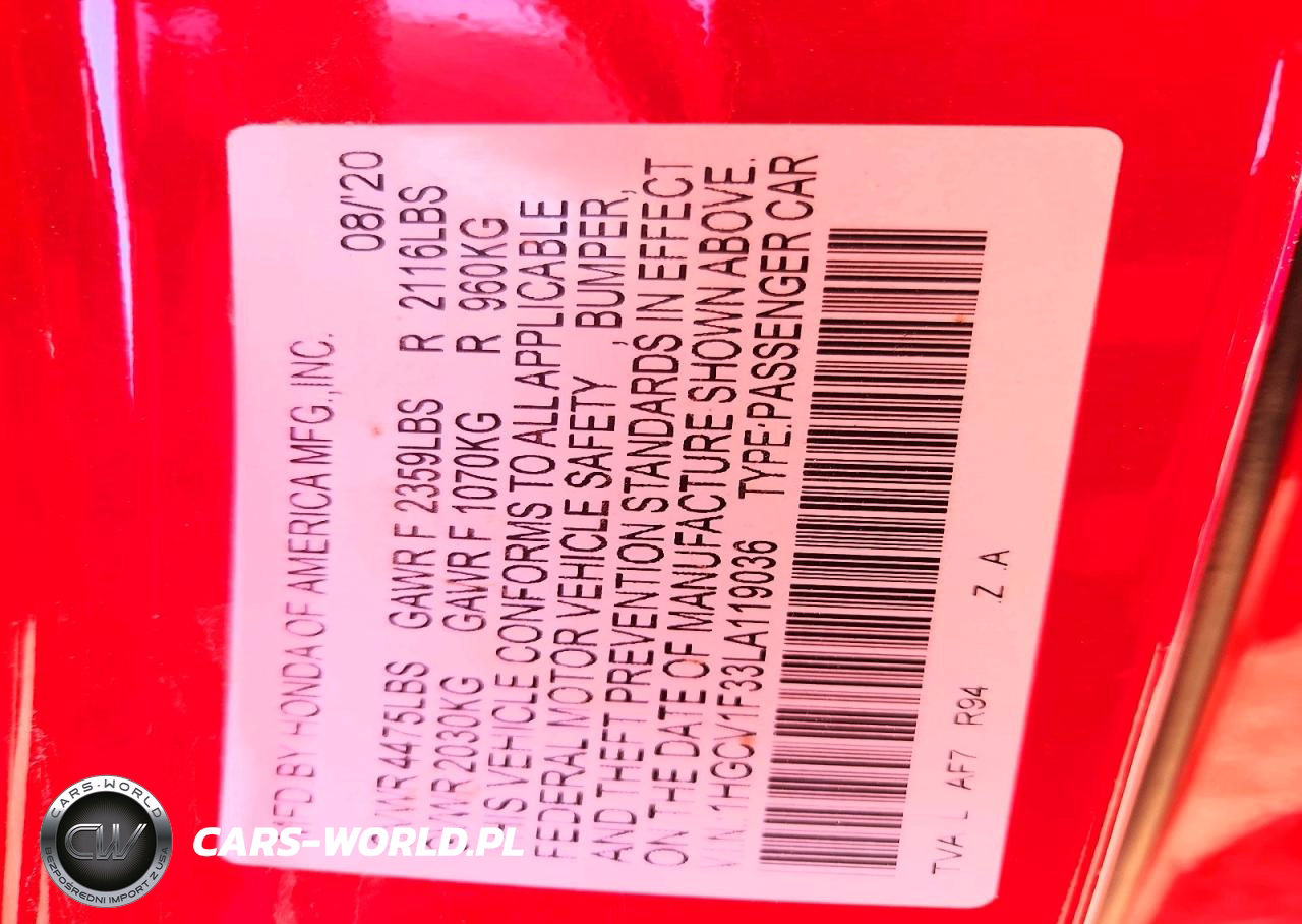 Copart Nr: C-75791575 VIN: 1HGCV1F33LA119036 Port: Houston, TX