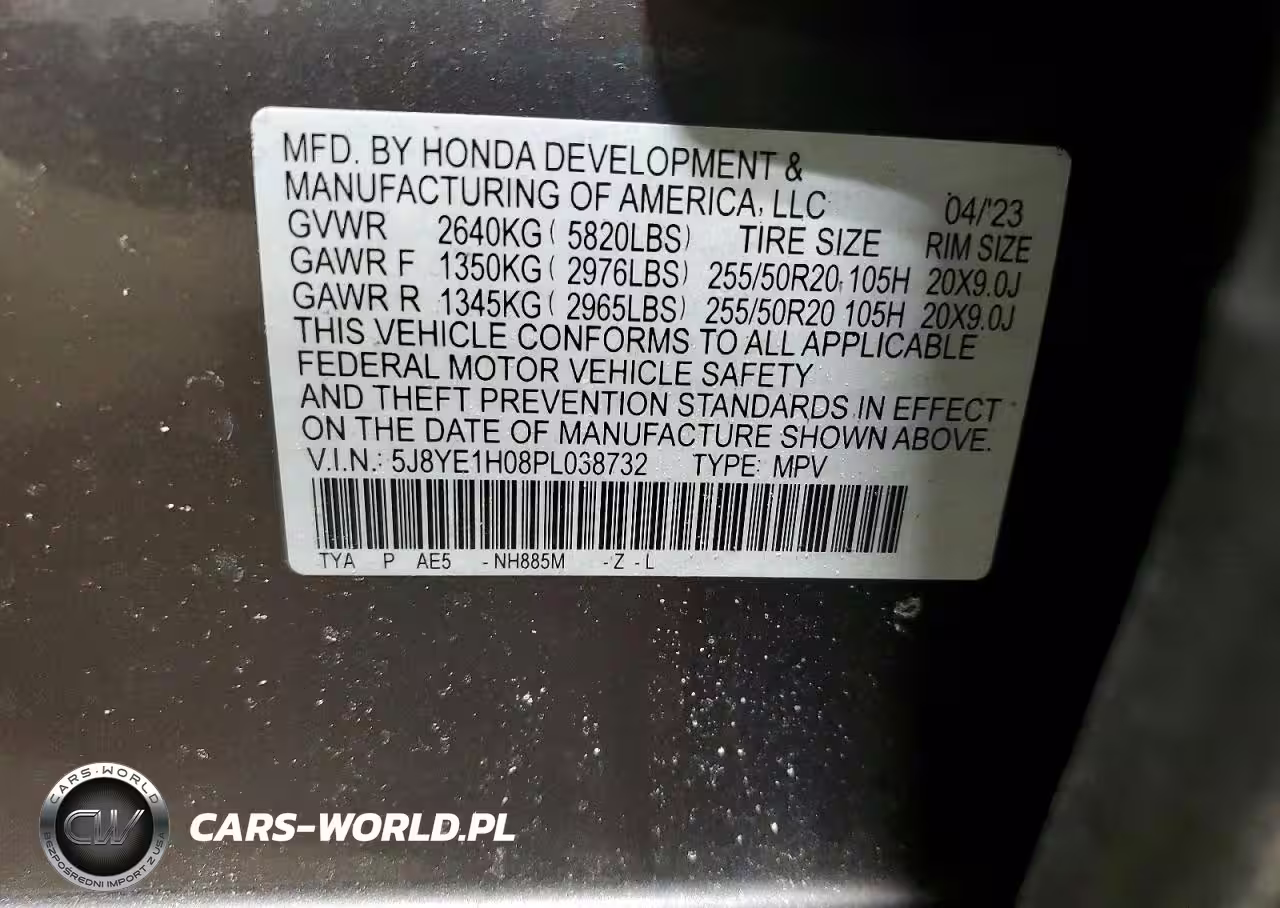 Copart Nr: C-75810375 VIN: 5J8YE1H08PL038732 Port: Elizabeth, NJ