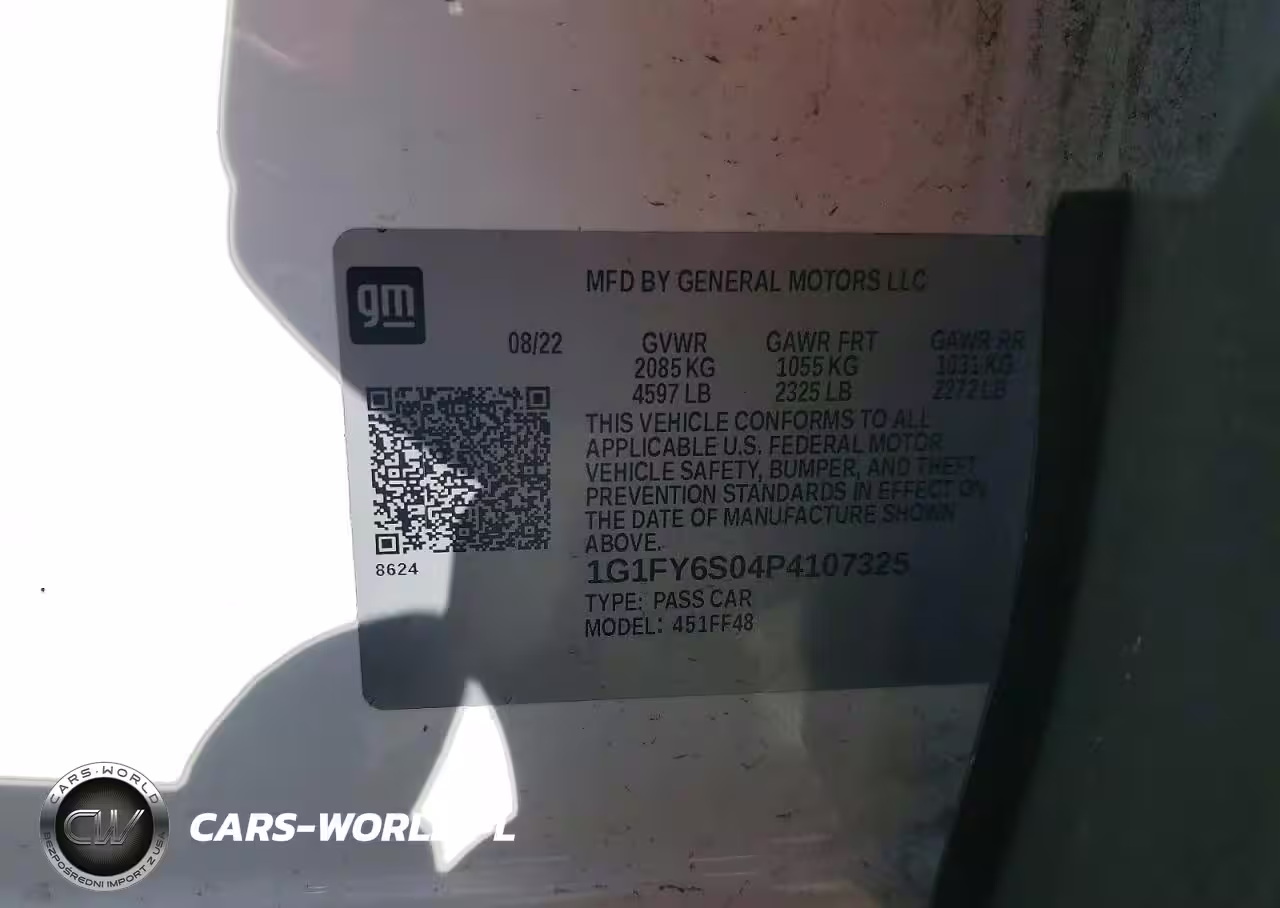 Copart Nr: C-75860735 VIN: 1G1FY6S04P4107325 Port: Los Angeles, CA