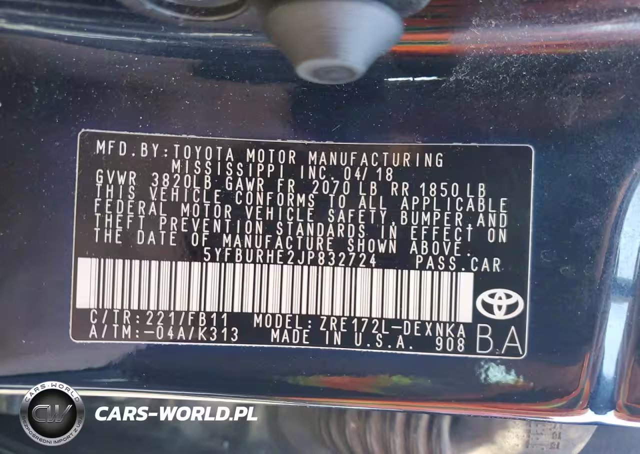Copart Nr: C-75899185 VIN: 5YFBURHE2JP832724 Port: Indianapolis, IN