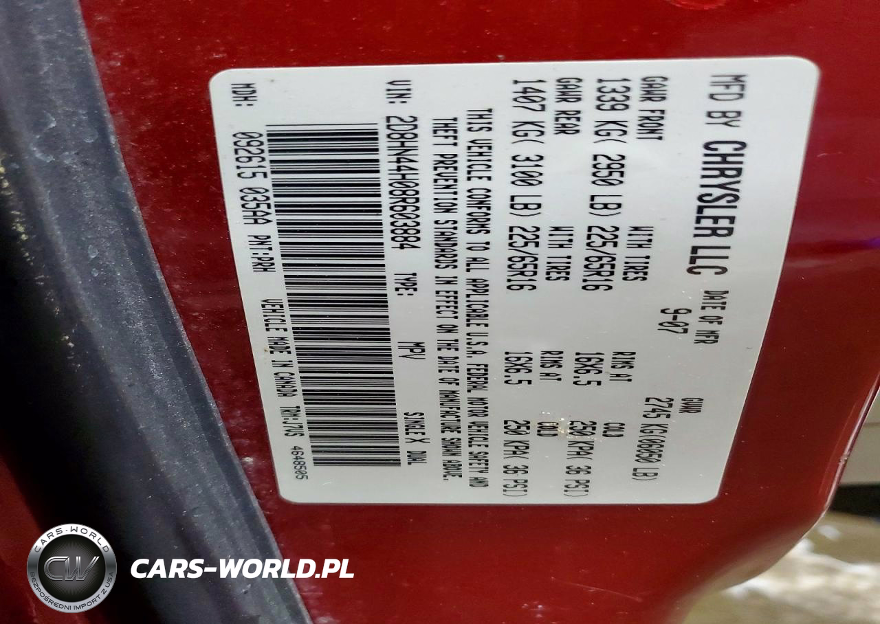 Copart Nr: C-75926765 VIN: 2D8HN44H08R603884 Port: Elizabeth, NJ