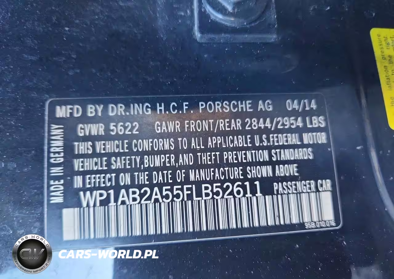 Copart Nr: C-75949525 VIN: WP1AB2A55FLB52611 Port: Elizabeth, NJ