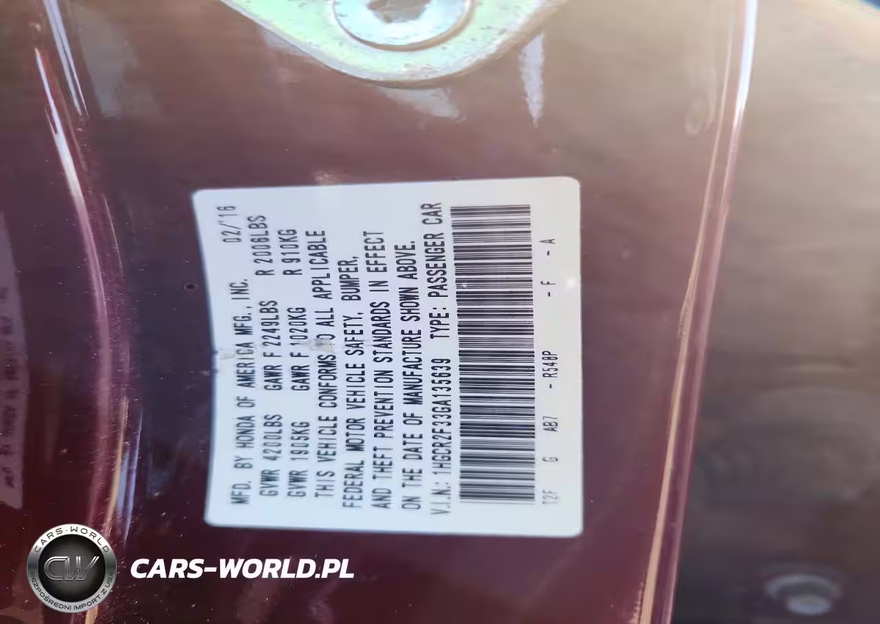 Copart Nr: C-75953655 VIN: 1HGCR2F33GA135639 Port: Elizabeth, NJ