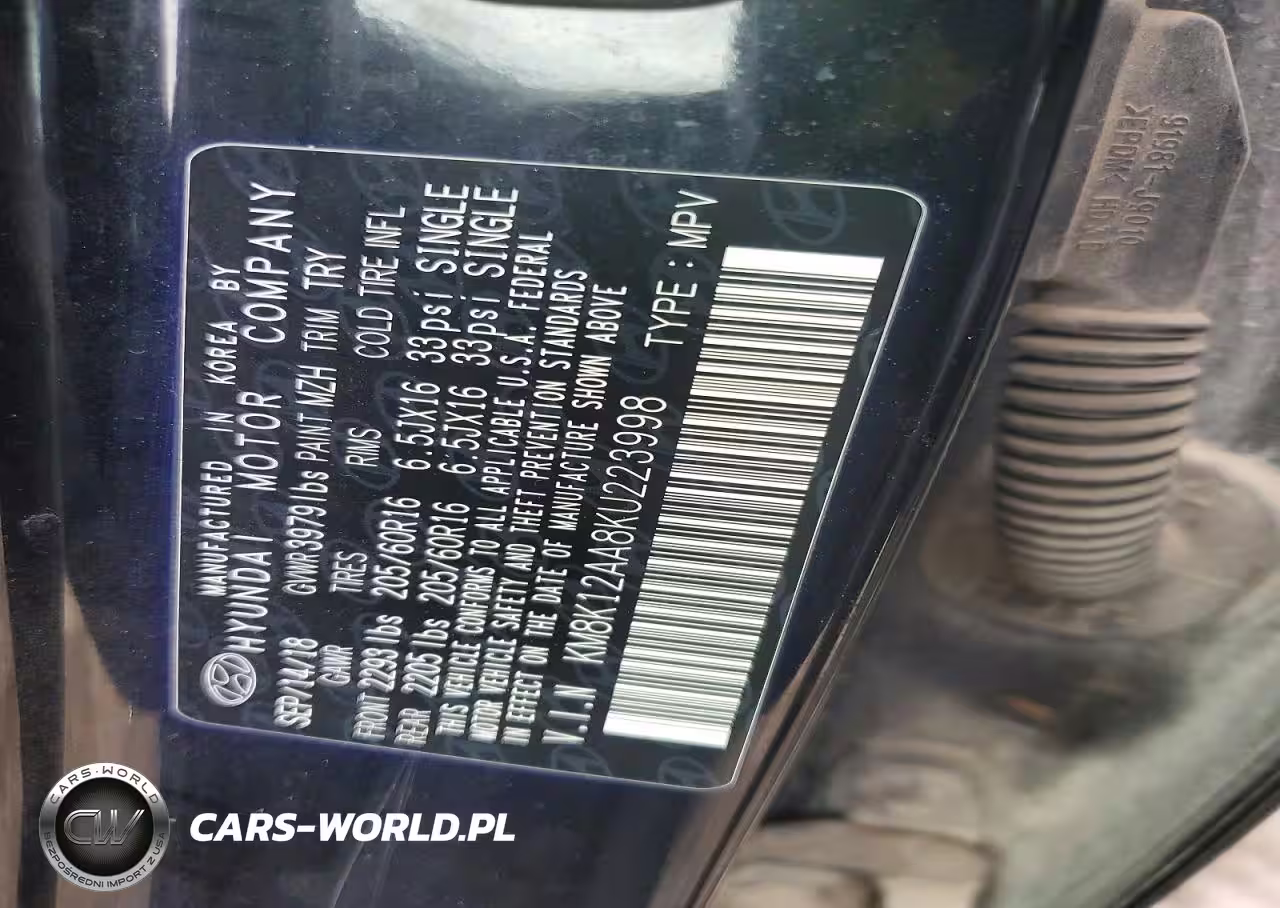Copart Nr: C-75959675 VIN: KM8K12AA8KU223998 Port: Houston, TX