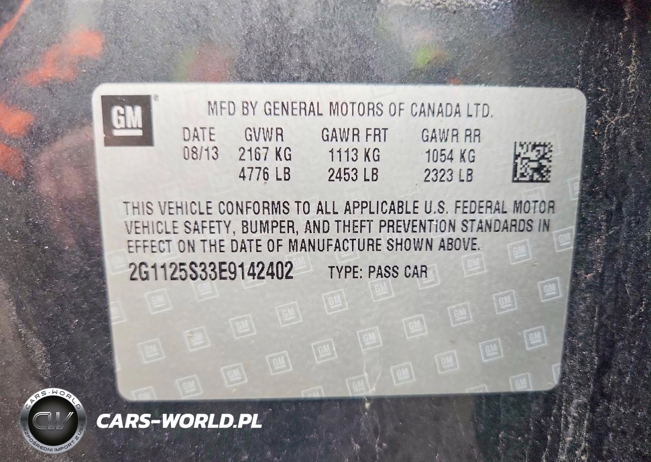 Copart Nr: C-76000355 VIN: 2G1125S33E9142402 Port: Indianapolis, IN