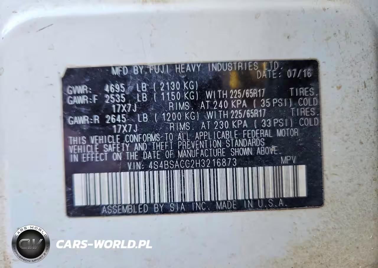 Copart Nr: C-76008325 VIN: 4S4BSACC2H3216873 Port: Houston, TX