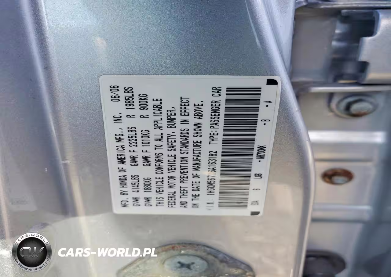 Copart Nr: C-76036865 VIN: 1HGCM56716A163182 Port: Elizabeth, NJ