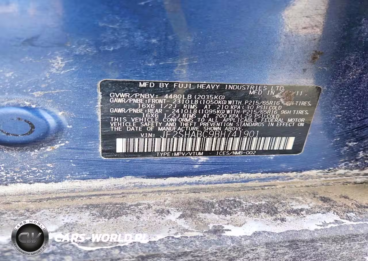 Copart Nr: C-76077565 VIN: JF2SHABC9BH741901 Port: Elizabeth, NJ