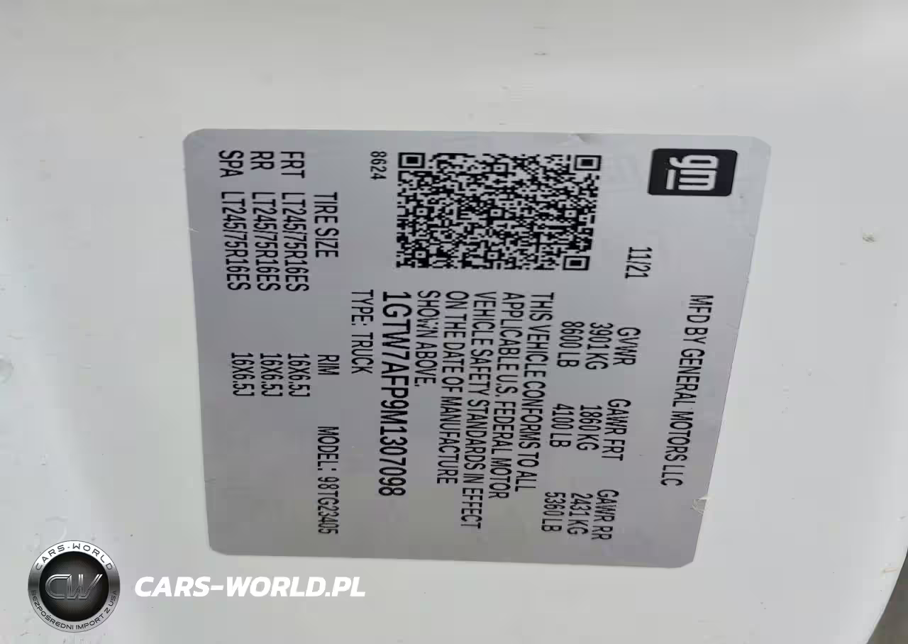 Copart Nr: C-76109855 VIN: 1GTW7AFP9M1307098 Port: Elizabeth, NJ