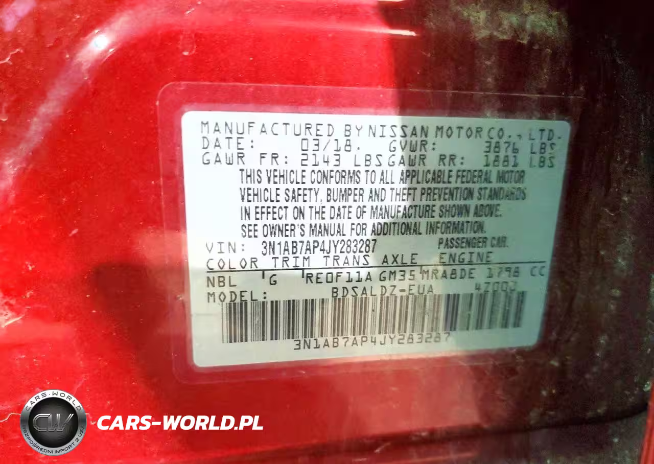 Copart Nr: C-76182015 VIN: 3N1AB7AP4JY283287 Port: Indianapolis, IN