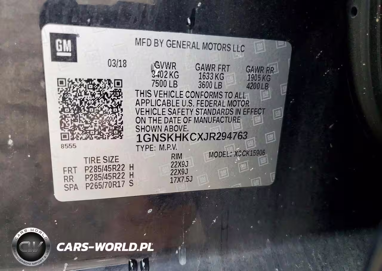 Copart Nr: C-76190285 VIN: 1GNSKHKCXJR294763 Port: Savannah, GA