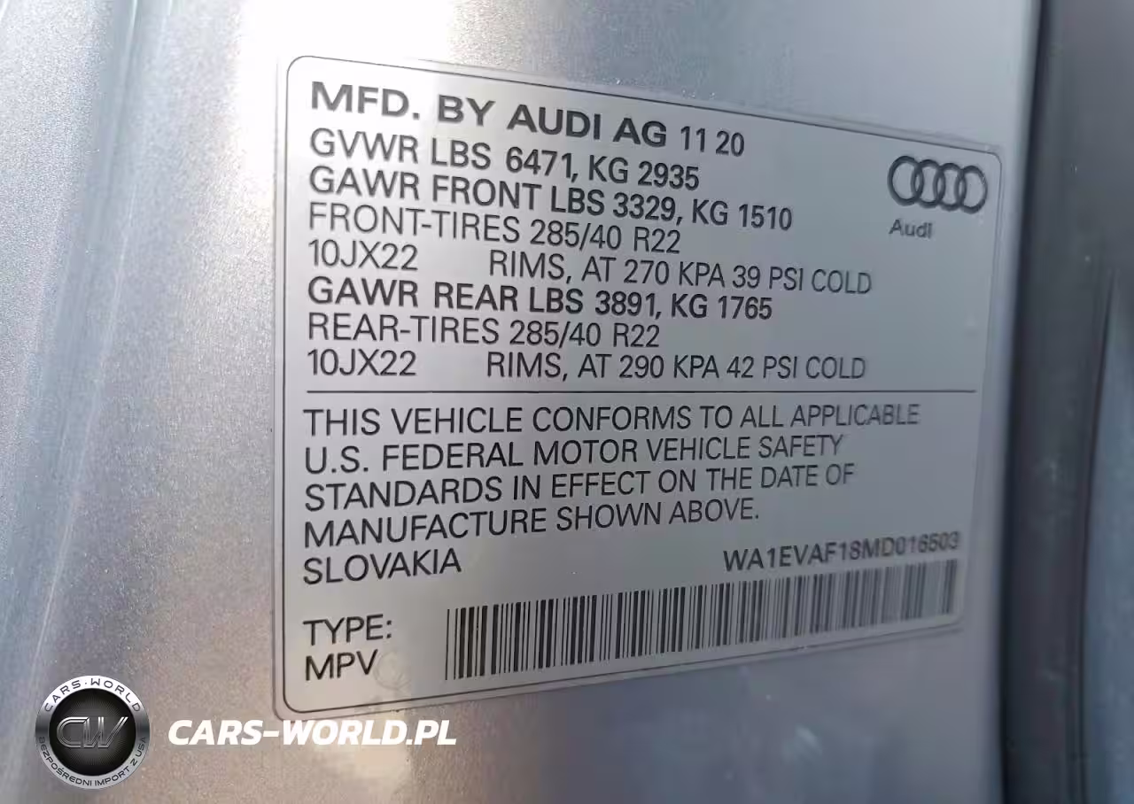 Copart Nr: C-76195515 VIN: WA1EVAF18MD016503 Port: Indianapolis, IN