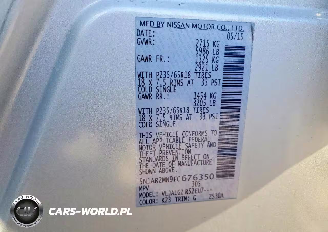 Copart Nr: C-76202185 VIN: 5N1AR2MN9FC676350 Port: Los Angeles, CA