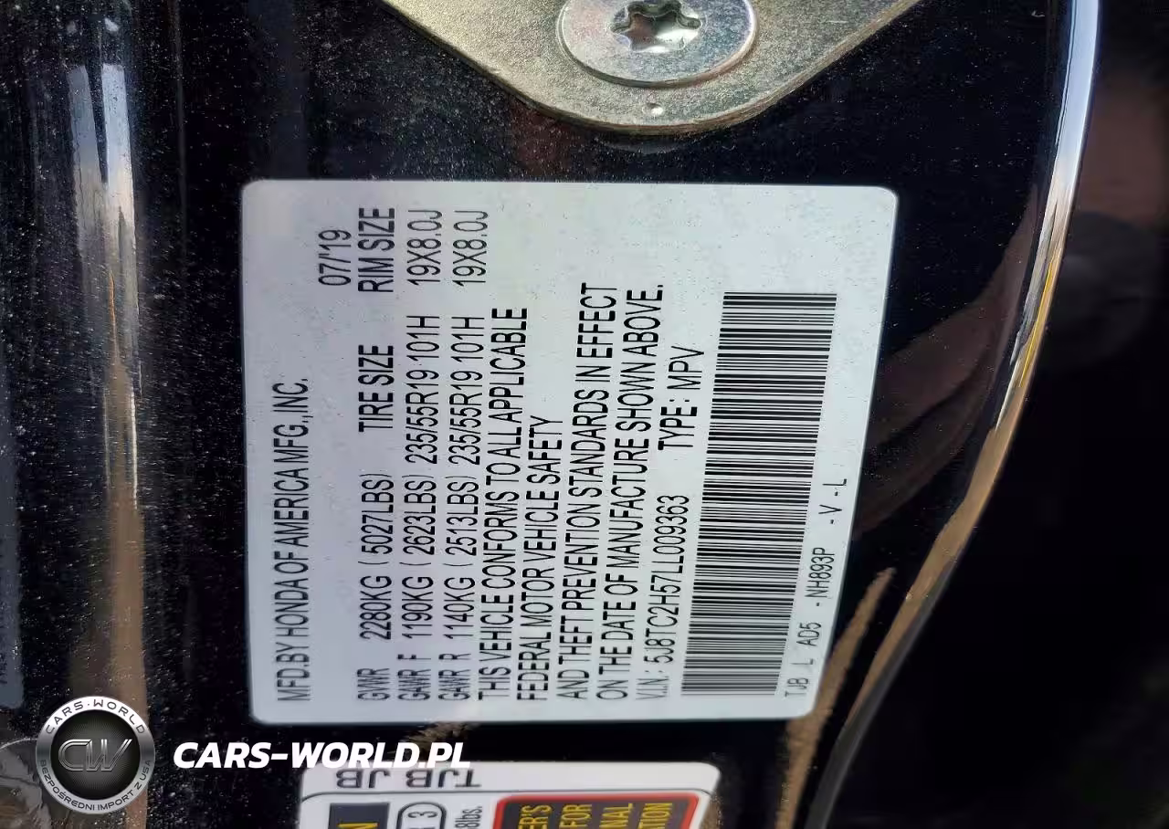 Copart Nr: C-76232275 VIN: 5J8TC2H57LL009363 Port: Indianapolis, IN