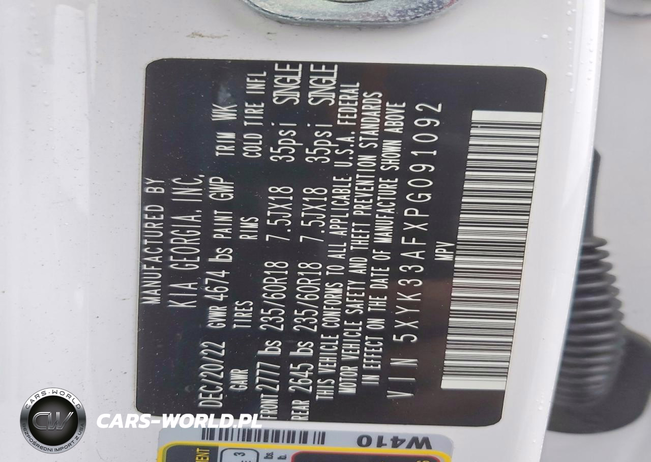 Copart Nr: C-76339355 VIN: 5XYK33AFXPG091092 Port: Savannah, GA