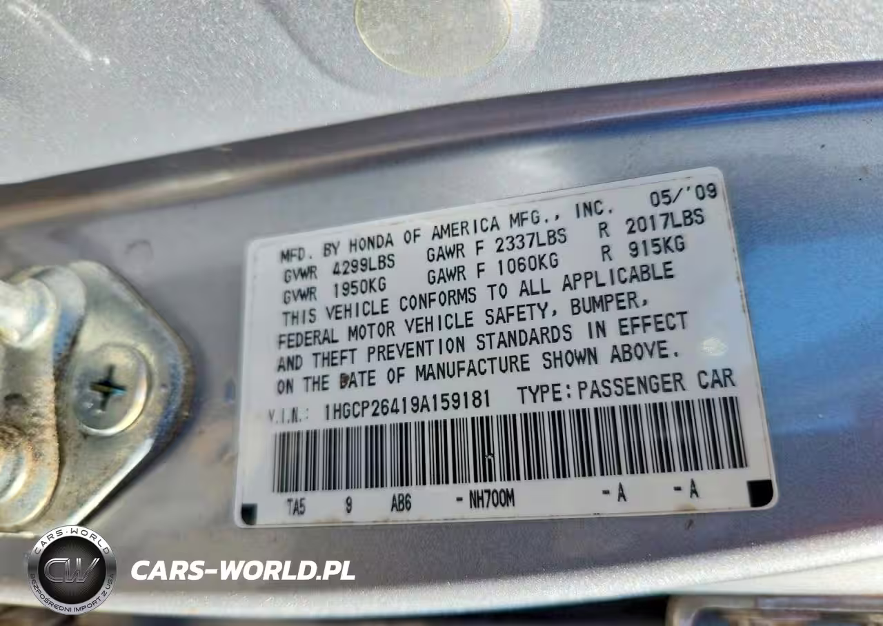 Copart Nr: C-76366315 VIN: 1HGCP26419A159181 Port: Savannah, GA