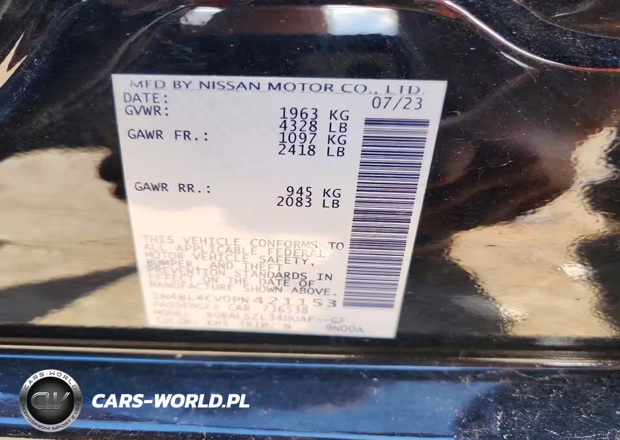 Copart Nr: C-76373865 VIN: 1N4BL4CV0PN421153 Port: Savannah, GA