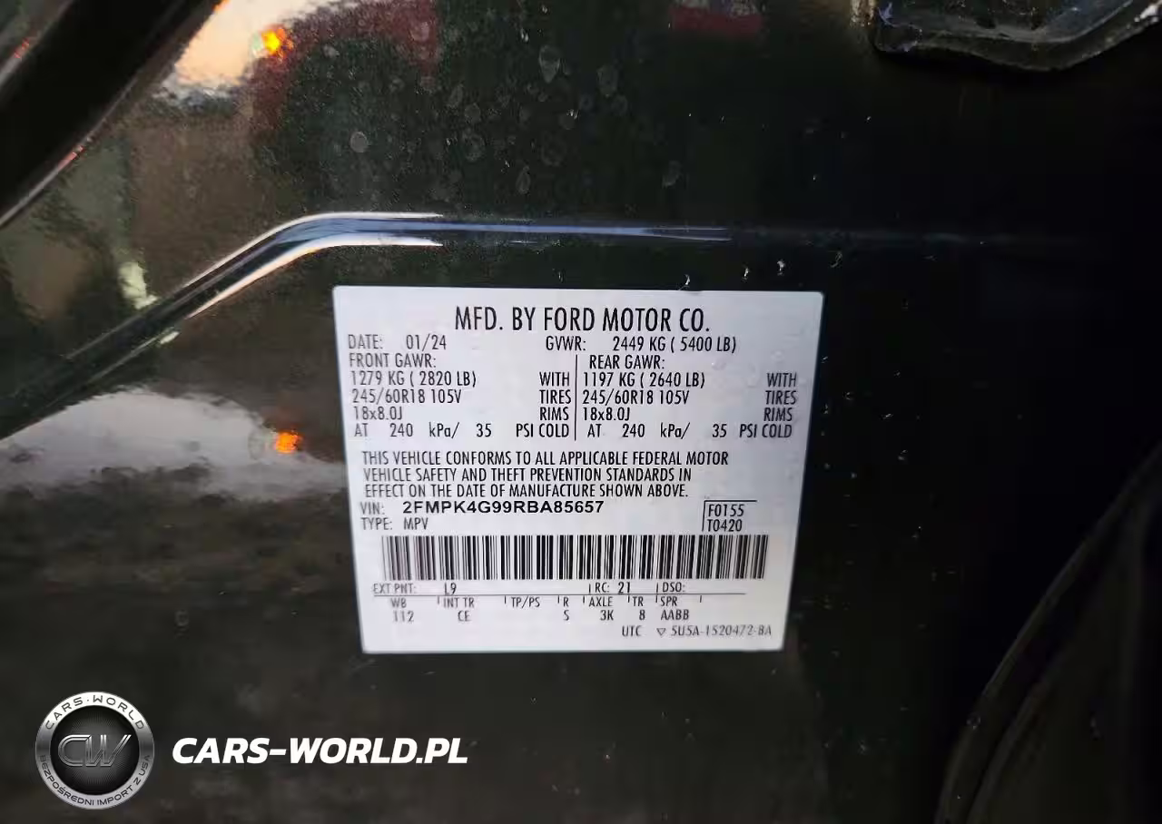 Copart Nr: C-76383185 VIN: 2FMPK4G99RBA85657 Port: Savannah, GA