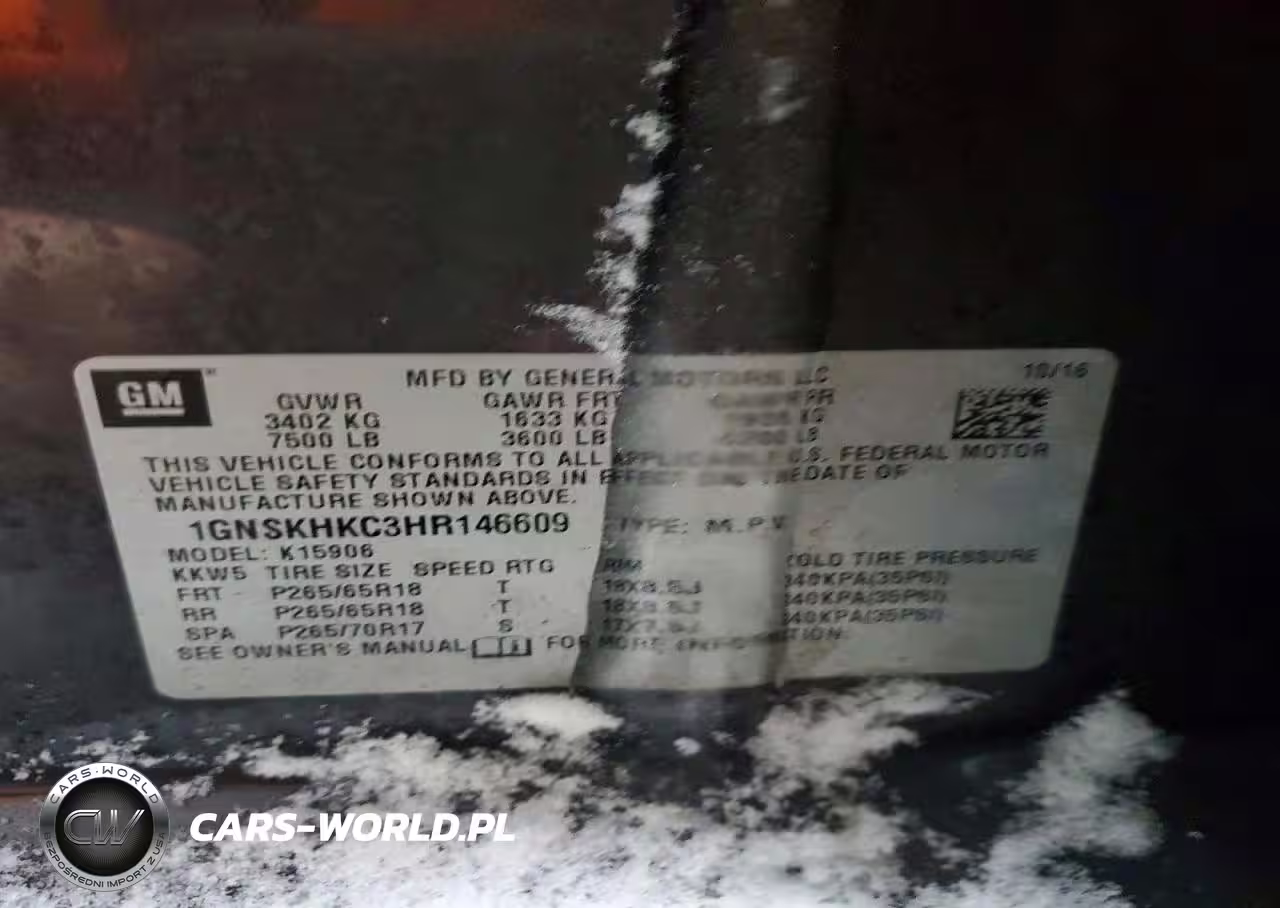 Copart Nr: C-76410375 VIN: 1GNSKHKC3HR146609 Port: Indianapolis, IN