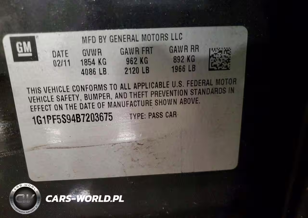 Copart Nr: C-76410425 VIN: 1G1PF5S94B7203675 Port: Indianapolis, IN