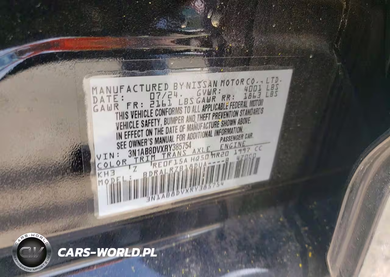 Copart Nr: C-76422655 VIN: 3N1AB8DVXRY385754 Port: Savannah, GA