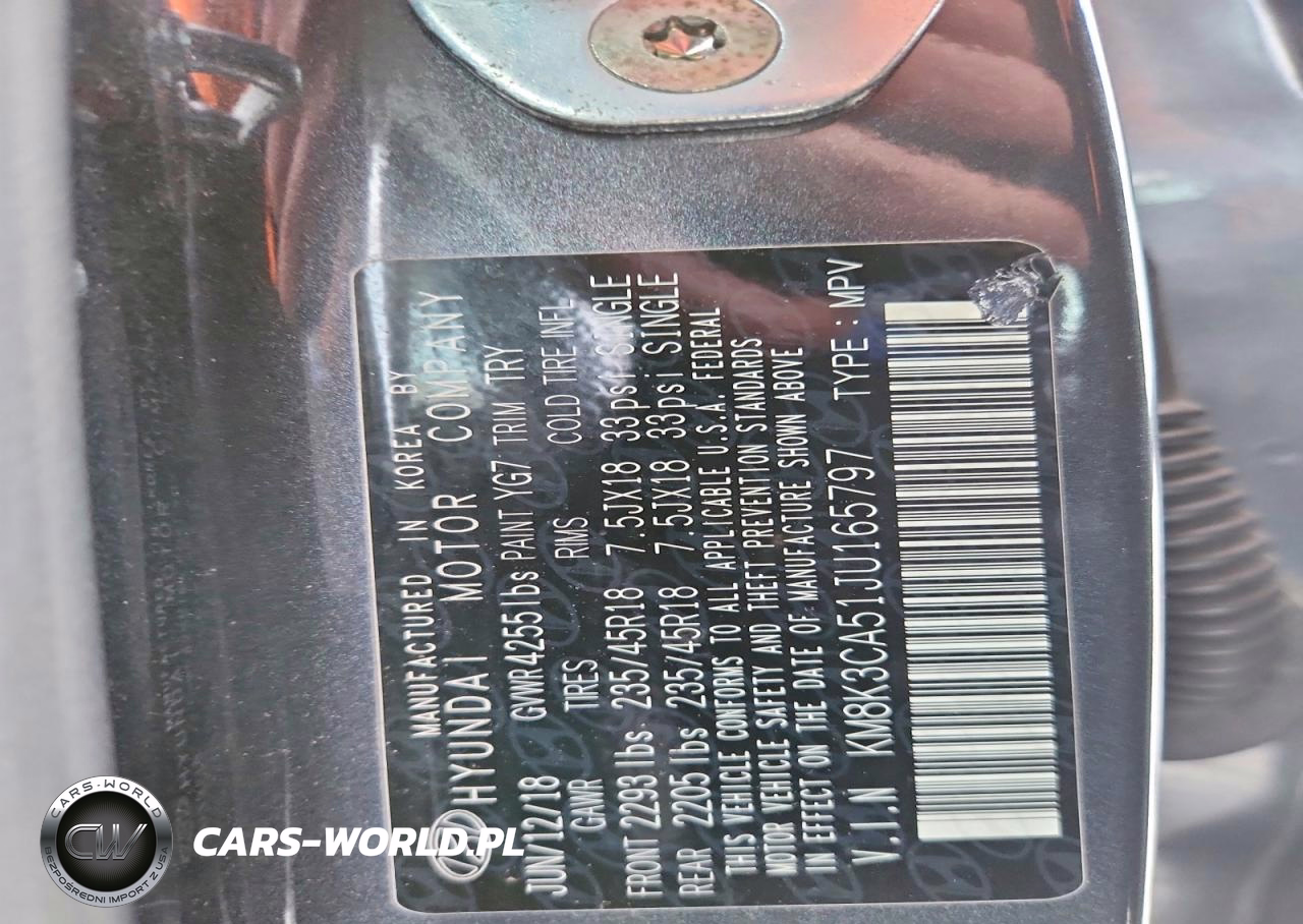 Copart Nr: C-76519395 VIN: KM8K3CA51JU165797 Port: Indianapolis, IN