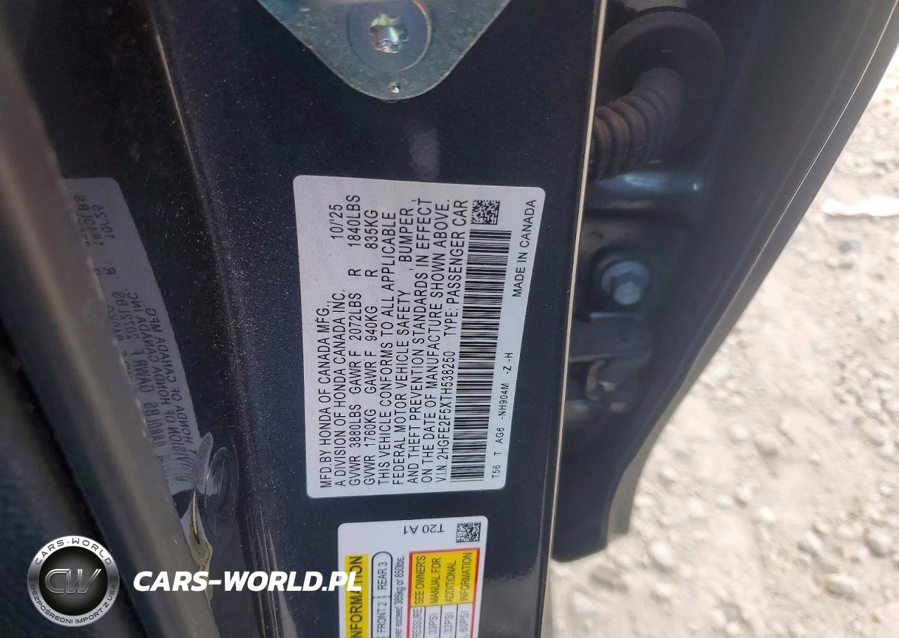 Copart Nr: C-76522875 VIN: 2HGFE2F5XTH538250 Port: Savannah, GA