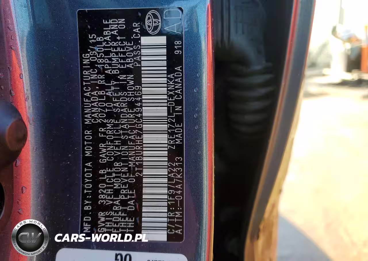 Copart Nr: C-76534395 VIN: 2T1BURHE7GC494469 Port: Indianapolis, IN