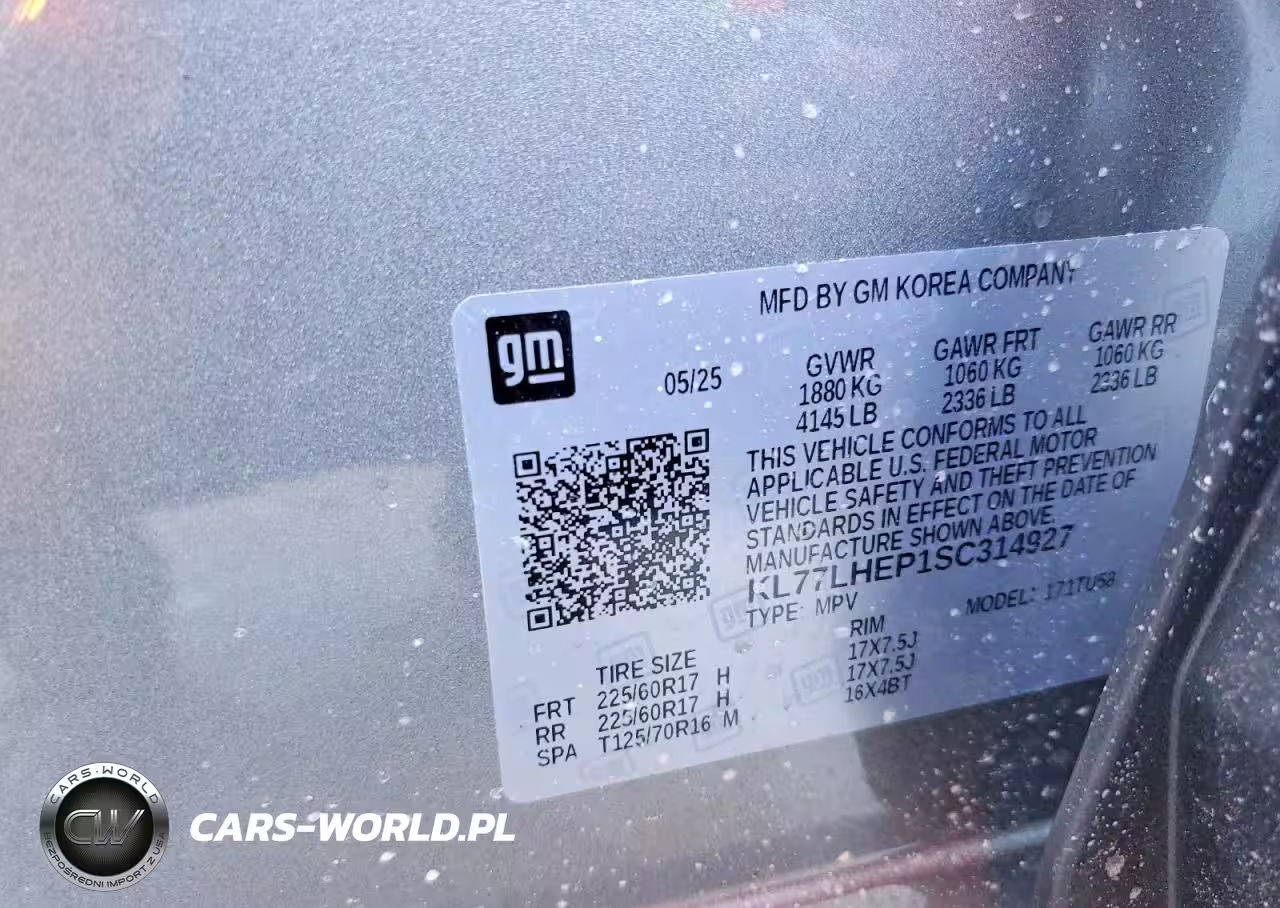 Copart Nr: C-76536565 VIN: KL77LHEP1SC314927 Port: Elizabeth, NJ