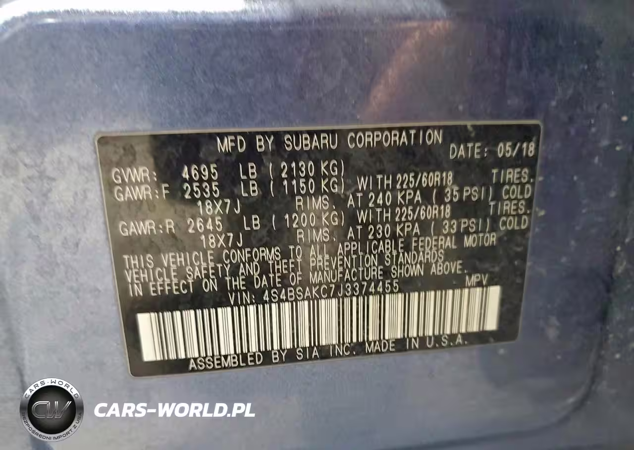 Copart Nr: C-76540975 VIN: 4S4BSAKC7J3374455 Port: Indianapolis, IN