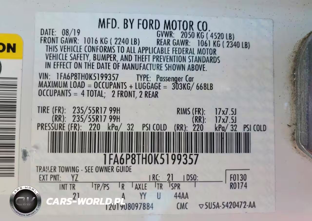 Copart Nr: C-76549245 VIN: 1FA6P8TH0K5199357 Port: Savannah, GA