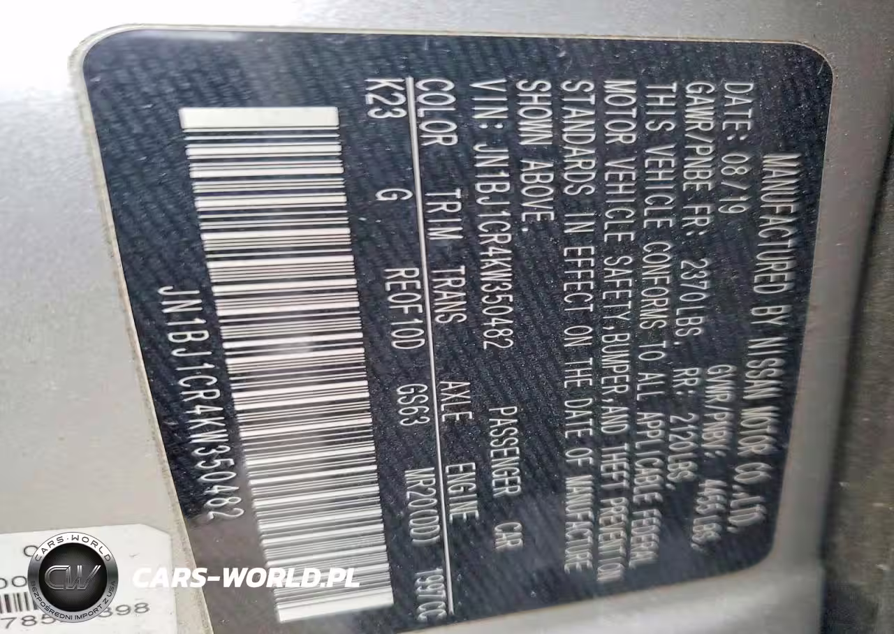 Copart Nr: C-76563525 VIN: JN1BJ1CR4KW350482 Port: Elizabeth, NJ