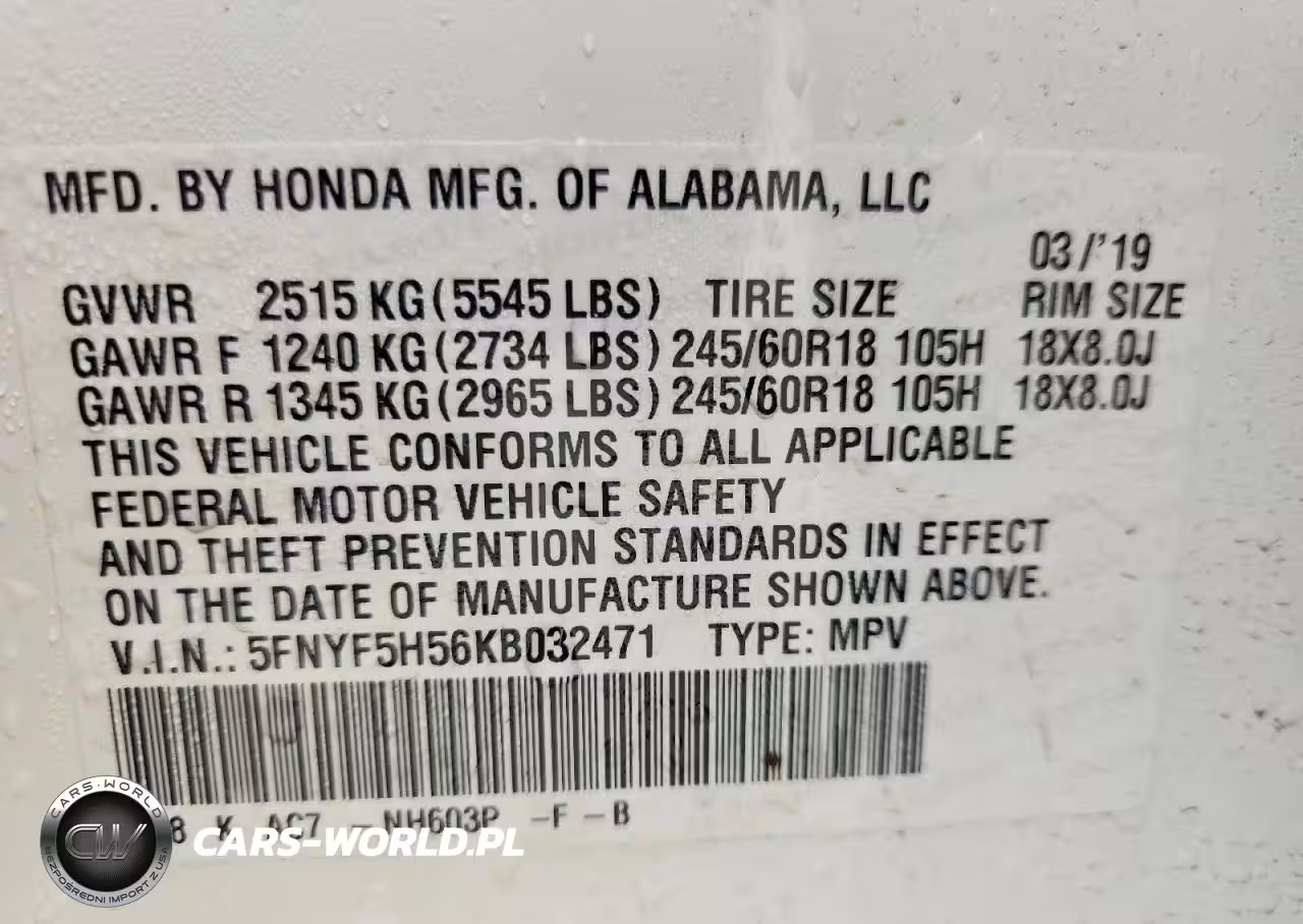 Copart Nr: C-76583215 VIN: 5FNYF5H56KB032471 Port: Houston, TX