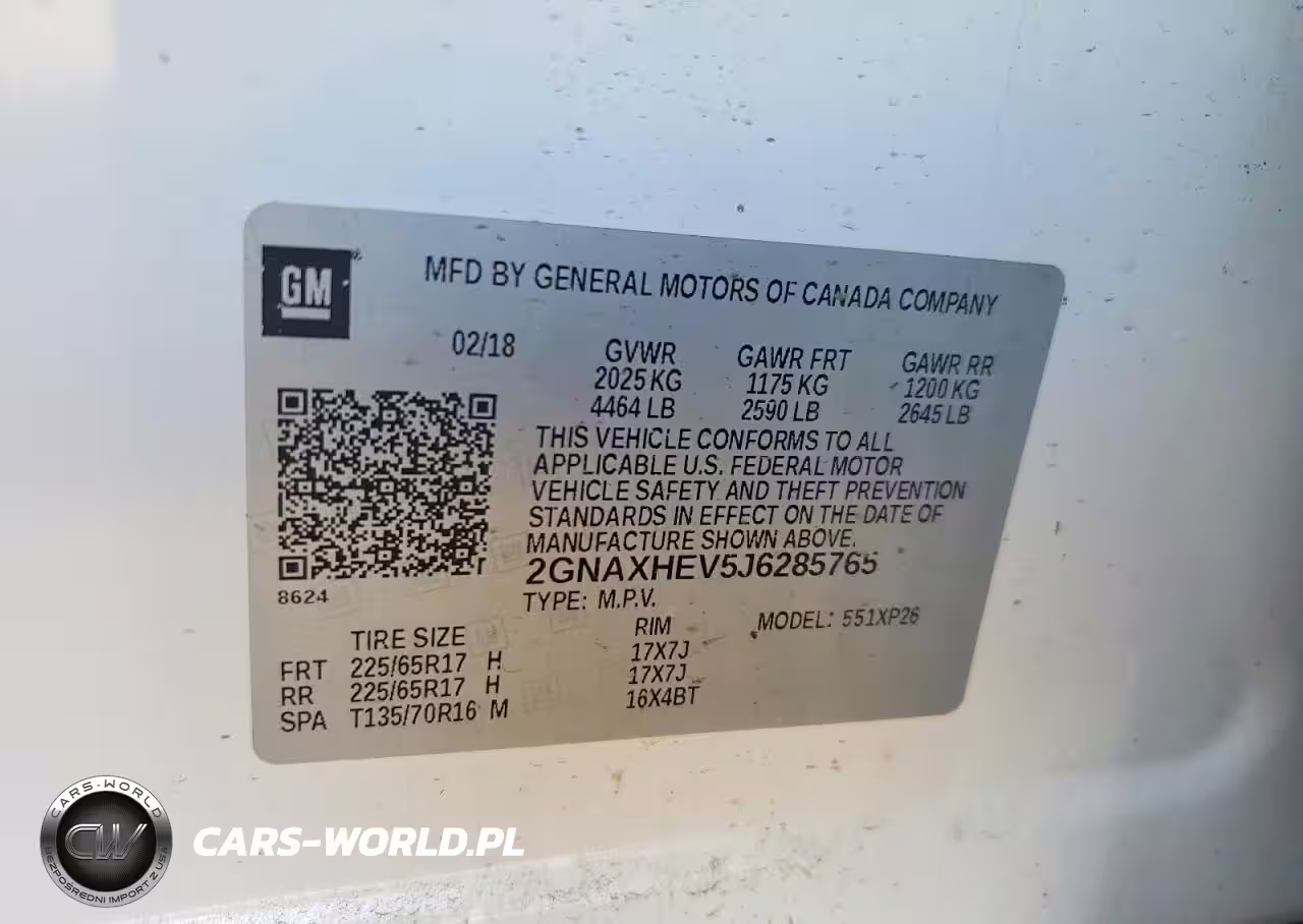 Copart Nr: C-76638315 VIN: 2GNAXHEV5J6285765 Port: Indianapolis, IN