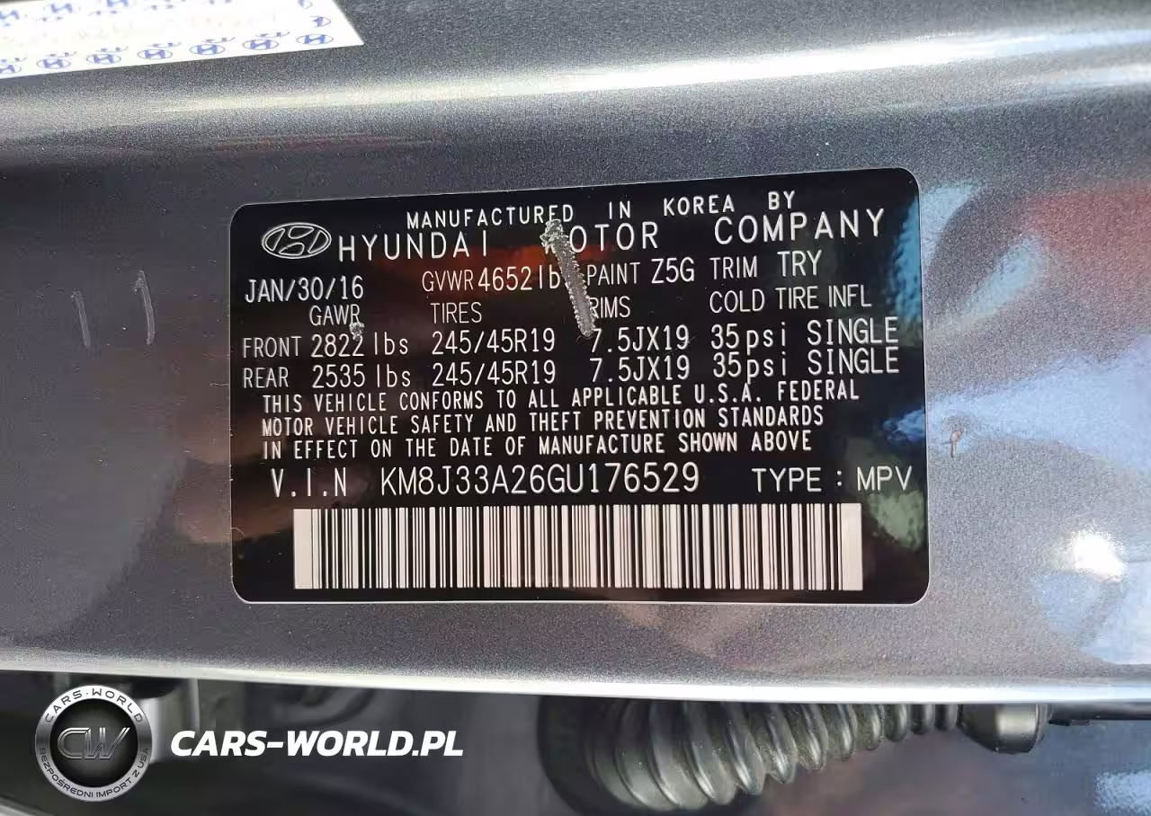 Copart Nr: C-76689995 VIN: KM8J33A26GU176529 Port: Los Angeles, CA