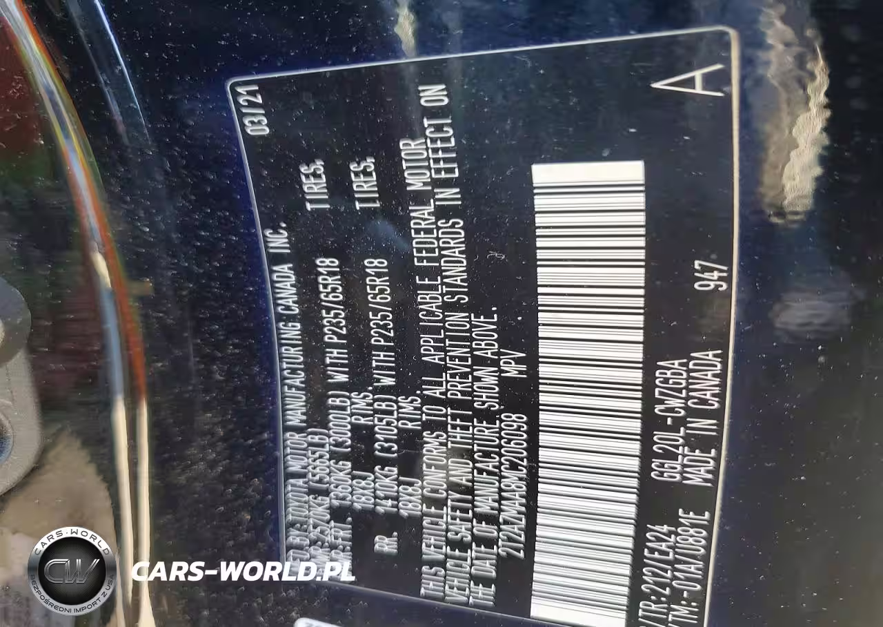 Copart Nr: C-76751215 VIN: 2T2AZMAA8MC206098 Port: Savannah, GA
