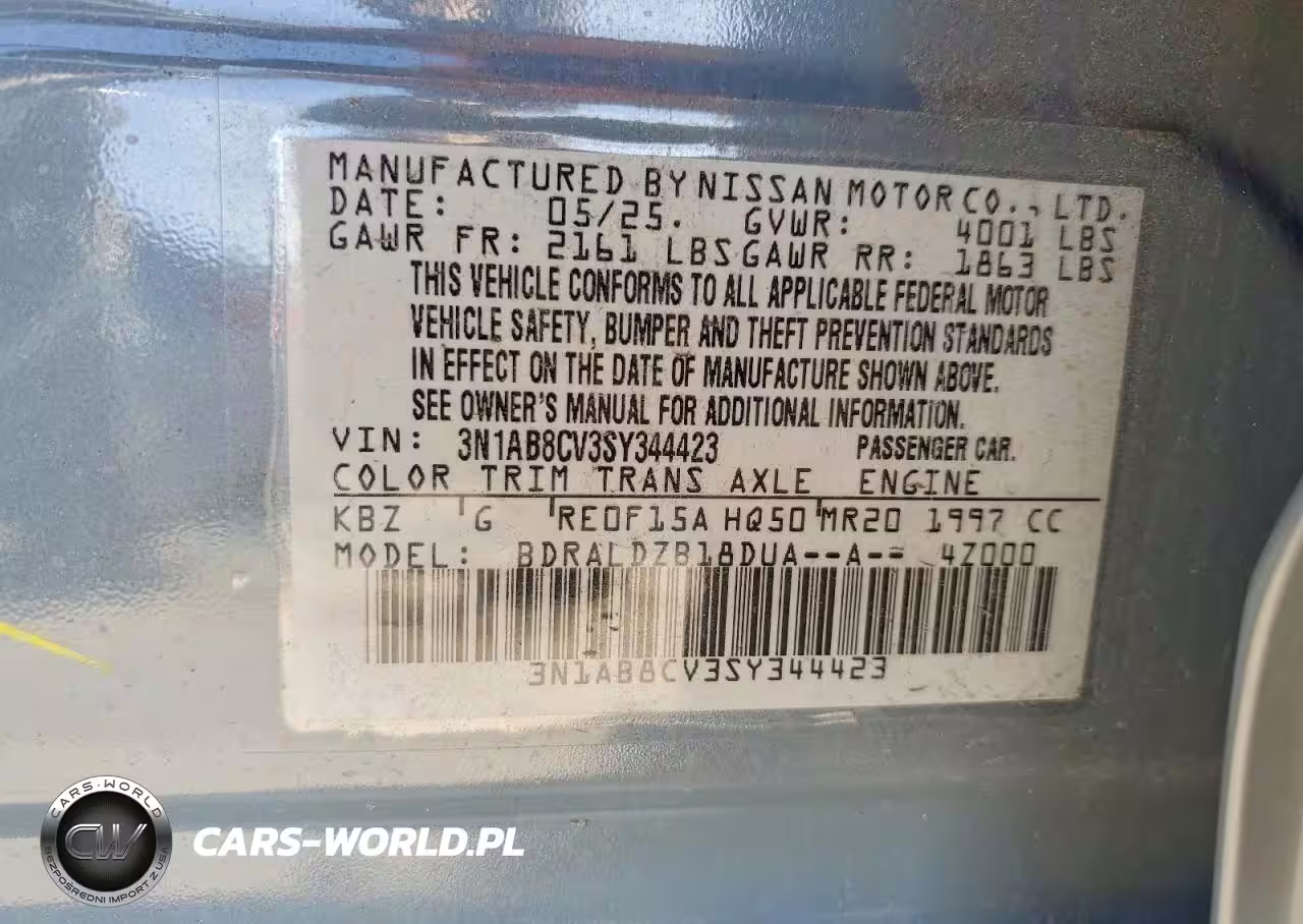Copart Nr: C-76799325 VIN: 3N1AB8CV3SY344423 Port: Savannah, GA