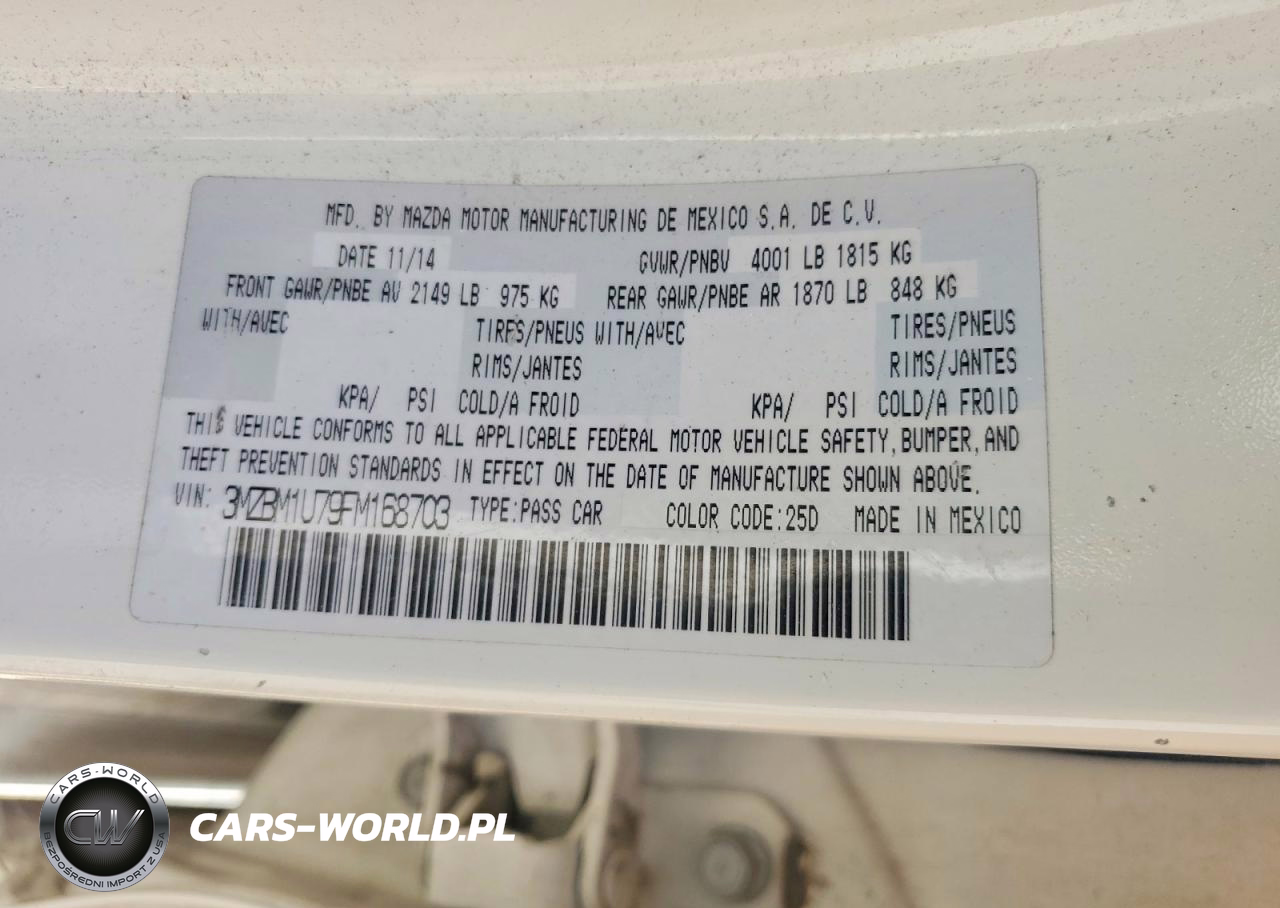 Copart Nr: C-76837205 VIN: 3MZBM1U79FM168703 Port: Houston, TX