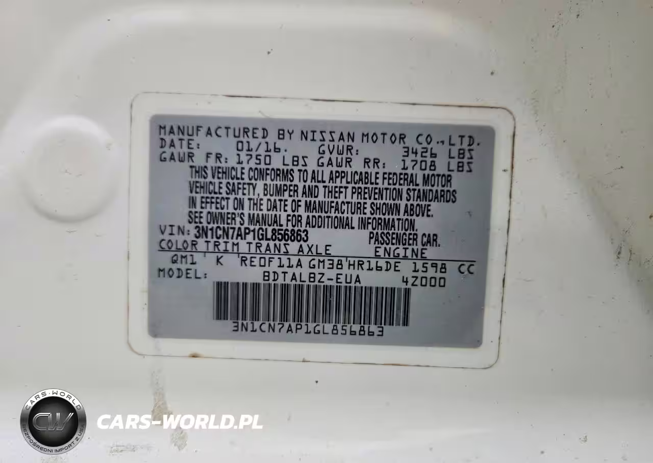 Copart Nr: C-76866725 VIN: 3N1CN7AP1GL856863 Port: Los Angeles, CA