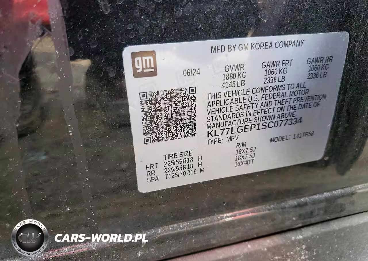 Copart Nr: C-76868795 VIN: KL77LGEP1SC077334 Port: Elizabeth, NJ