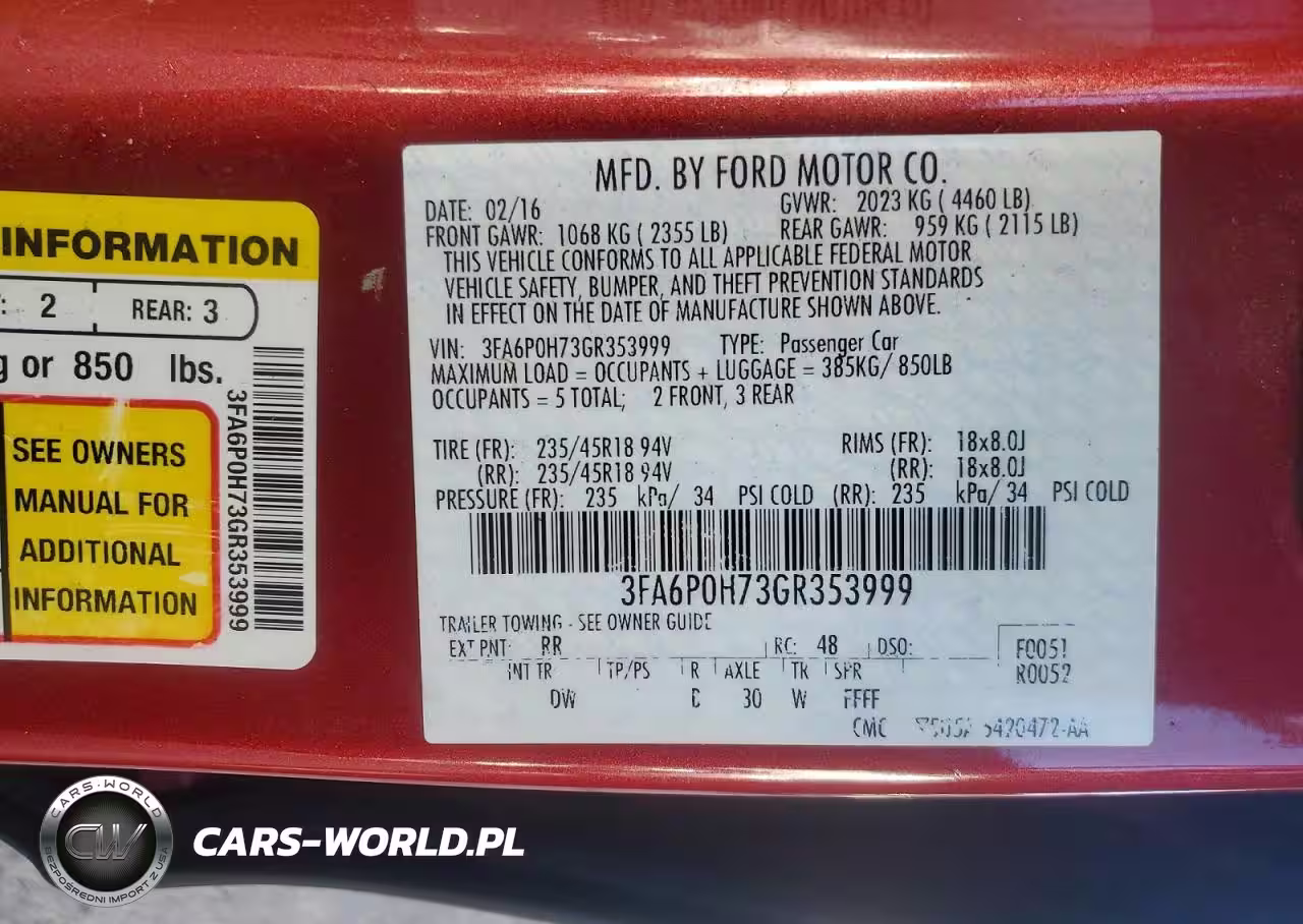 Copart Nr: C-76927835 VIN: 3FA6P0H73GR353999 Port: Indianapolis, IN