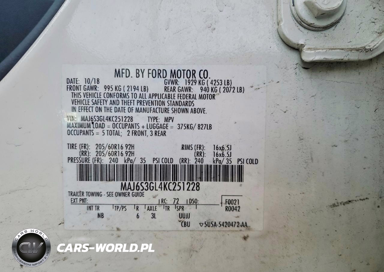 Copart Nr: C-76954885 VIN: MAJ6S3GL4KC251228 Port: Houston, TX