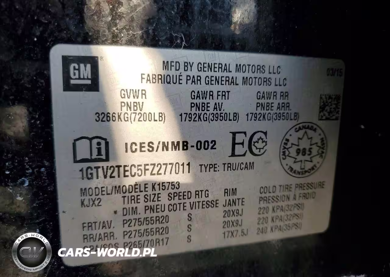 Copart Nr: C-76955125 VIN: 1GTV2TEC5FZ277011 Port: Elizabeth, NJ