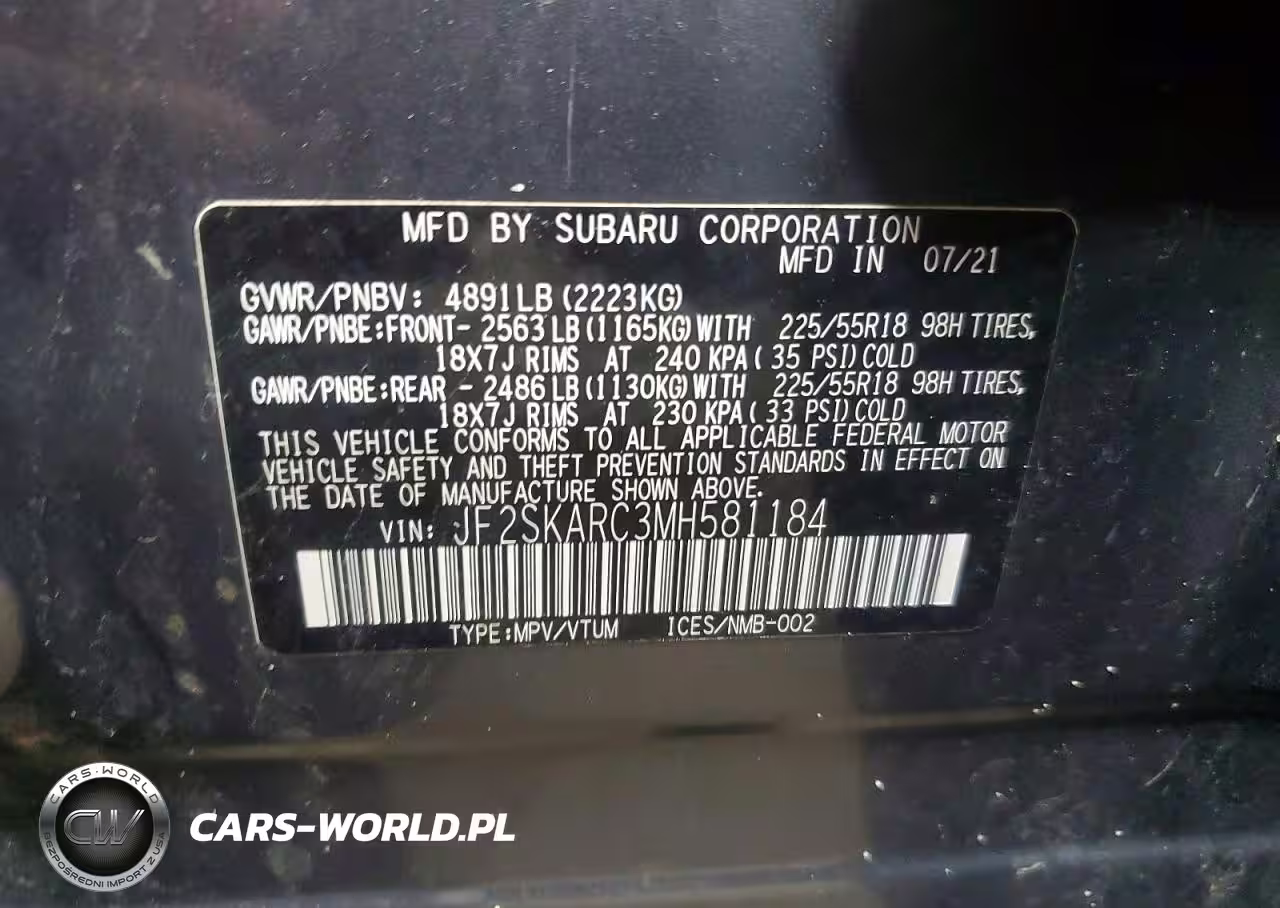Copart Nr: C-76993135 VIN: JF2SKARC3MH581184 Port: Indianapolis, IN