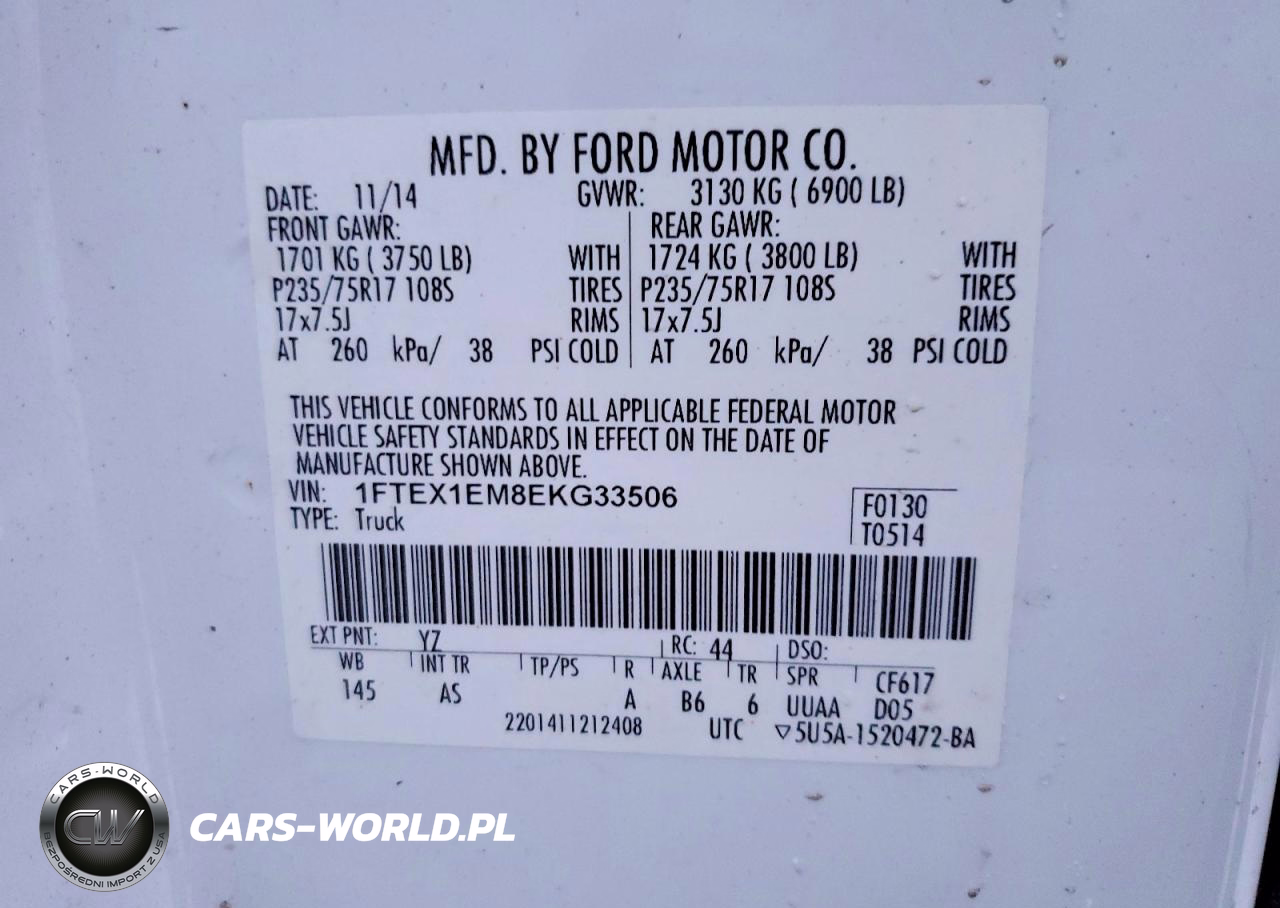 Copart Nr: C-76999995 VIN: 1FTEX1EM8EKG33506 Port: Elizabeth, NJ