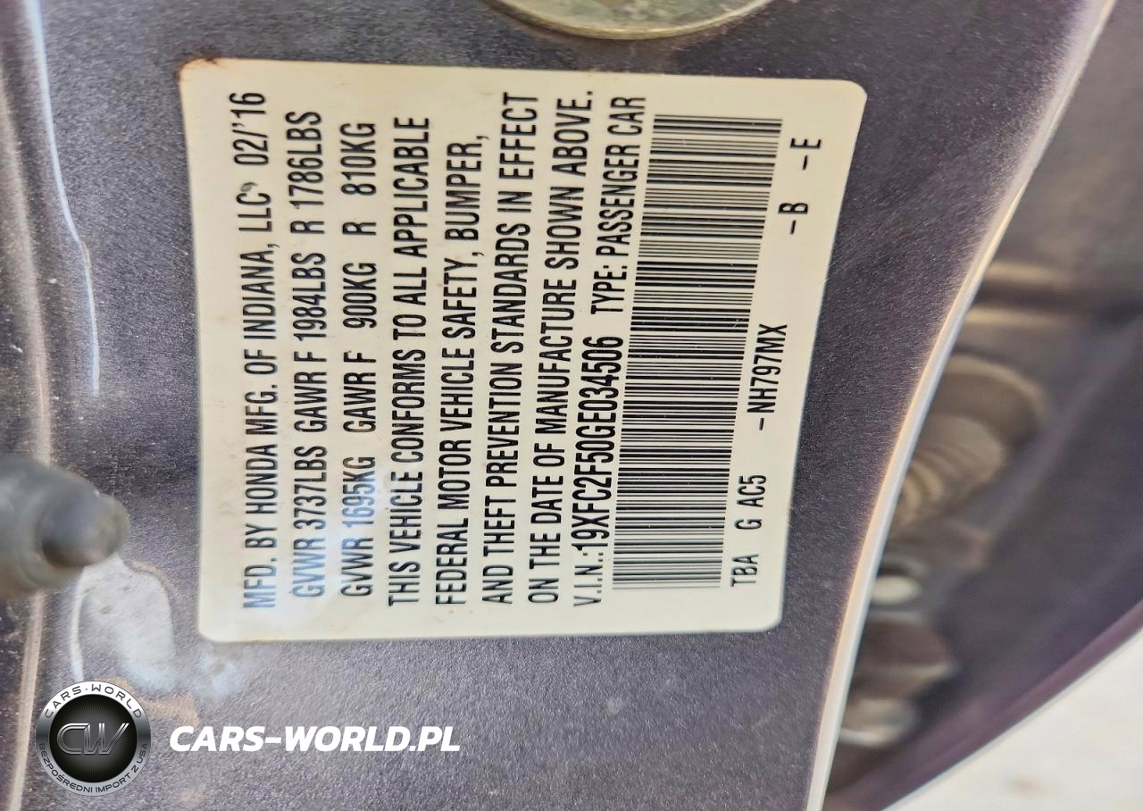 Copart Nr: C-77017365 VIN: 19XFC2F50GE034506 Port: Houston, TX
