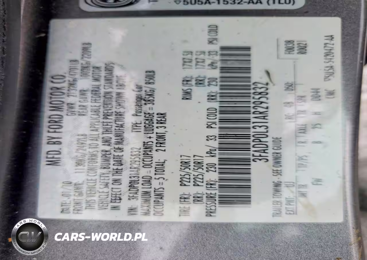 Copart Nr: C-77018775 VIN: 3FADP0L31AR295832 Port: Elizabeth, NJ