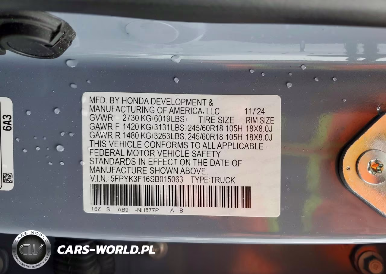 Copart Nr: C-77033615 VIN: 5FPYK3F16SB015063 Port: Elizabeth, NJ